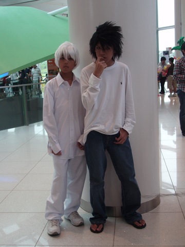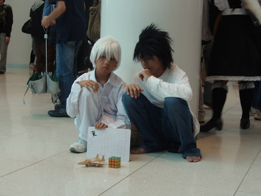 Deathnote LOL. Near and L (: The cosplayers look pretty young, but they look convincingly like Near and L. Actually, Desiree and I observed four Ls (and counting) at the event T__T But this is the best so far. I like how L did his hair, and his expression and everything.