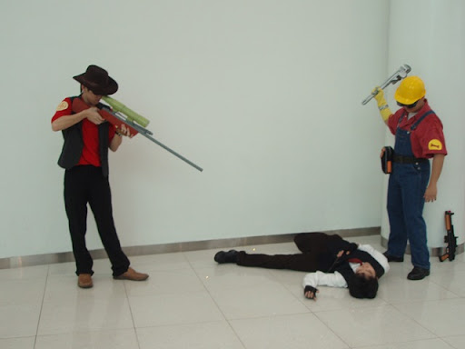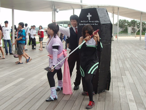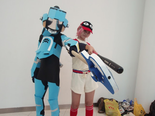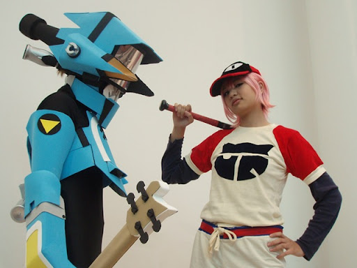 FLCL!! Furi Kuri XD. Atomsk and Haruko! MY favourite characters in the event. Although the storyline for this anime doesn't make any sense >_> But the seiyuus for this show are really good XD The art is a little eccentric and all, but altogether, it's a really exciting anime. I like how they pulled the characters off!