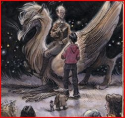 This is a Griffin, Arther Spiderwick's pet. It can only be summoned in this ...strange tense. But the first three words were "Griff, Grapp, Greep". The shape of the Griffin in here is also similar to that of Harry Potter, just that the latter names it Hippogriff instead. They are the same thing.