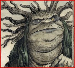 This is Mulgarath, an Ogre. It is a creature that every secret creature is afraid of, since it is a sly shape-shifter. His real look is like that though, and he's humongous. The way he dies is freaking funny...