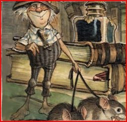 This is Thimbletack. Both of them. Thimbletack is a brownie, as shown on the left. But when Thimbletack is provoked, it swells up like the hulk, and turns into a Boggart, as shown on the right. Brownies like to eat honey and will be appeased with that.